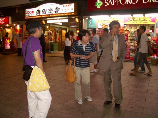 釜沢君は奥さんがいないと札幌の町は歩けないとのことで隣に来てもらいました。 |