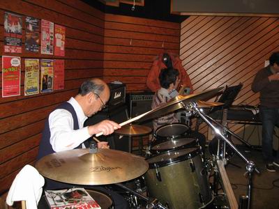 | き○しはスティックを2組買って意欲満々。 | バンド経験もあるらしい。楽譜を見ながらすぐ弾きだした。 |